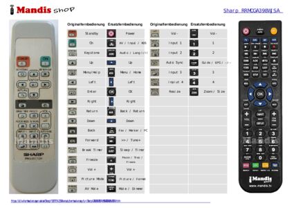 Diese Fernbedienung ersetzt Ihre GA398WJSA (RRMCGA398WJSA) in vollem Umfang und bietet alle Funktionen des Originals.