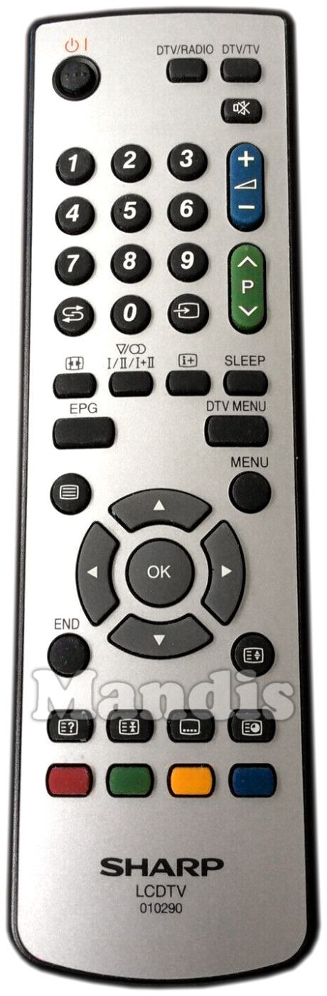 Fernbedienung Original 010290 zur Steuerung der TV-Geräte der Marke Sharp. Es handelt sich um eine Originalfernbedienung.
