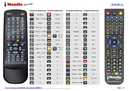 Ein Dokument ist enthalten, um die Verwendung der neuen Fernbedienung zu erleichtern, indem es die Tastenbelegung zeigt.