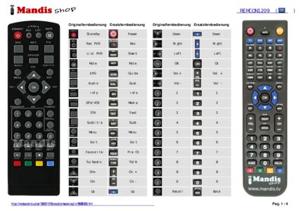Ein Dokument ist enthalten, um die Verwendung der neuen Fernbedienung zu erleichtern, indem es die Tastenbelegung zeigt.