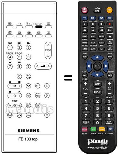 Fernbedienung, die das Original und die Gesamtheit seiner Funktionen, vollständig ersetzt.