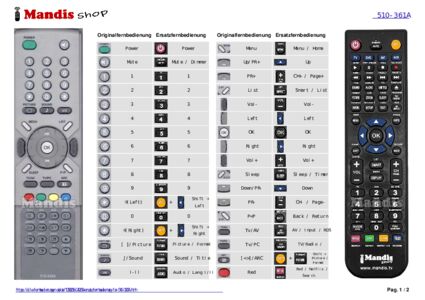 Ein Dokument ist enthalten, um die Verwendung der neuen Fernbedienung zu erleichtern, indem es die Tastenbelegung zeigt.