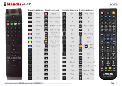 Diese Fernbedienung ersetzt Ihre RC 3900 (30070417) in vollem Umfang und bietet alle Funktionen des Originals.