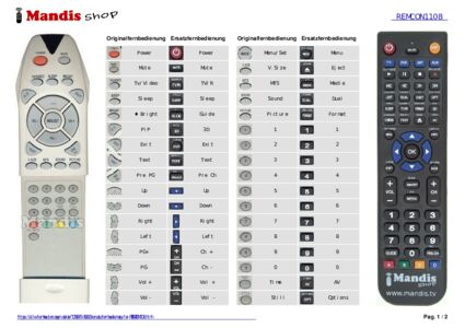 Ein Dokument ist enthalten, um die Verwendung der neuen Fernbedienung zu erleichtern, indem es die Tastenbelegung zeigt.