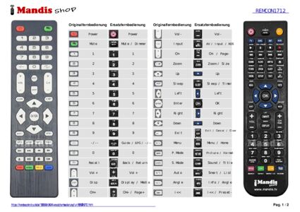 Ein Dokument ist enthalten, um die Verwendung der neuen Fernbedienung zu erleichtern, indem es die Tastenbelegung zeigt.
