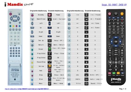 Frage an Sogo SS-9847 DVDIVX Fernbedienung