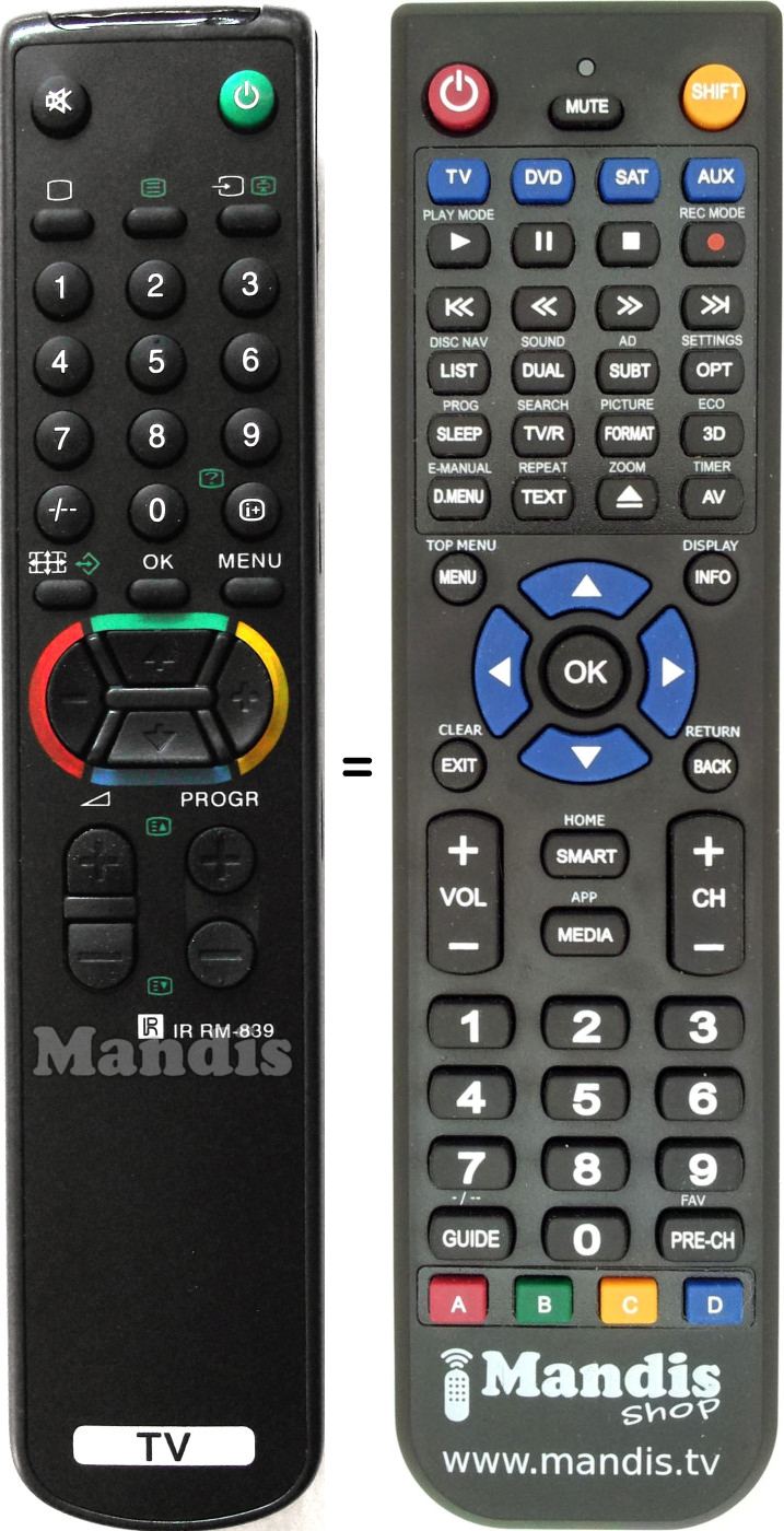 Diese Fernbedienung ersetzt Ihre RM839 in vollem Umfang und bietet alle Funktionen des Originals.