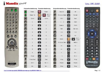 Ein Dokument ist enthalten, um die Verwendung der neuen Fernbedienung zu erleichtern, indem es die Tastenbelegung zeigt.