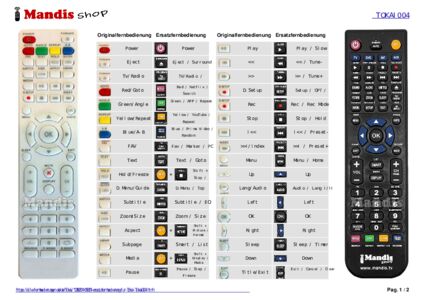 Ein Dokument ist enthalten, um die Verwendung der neuen Fernbedienung zu erleichtern, indem es die Tastenbelegung zeigt.