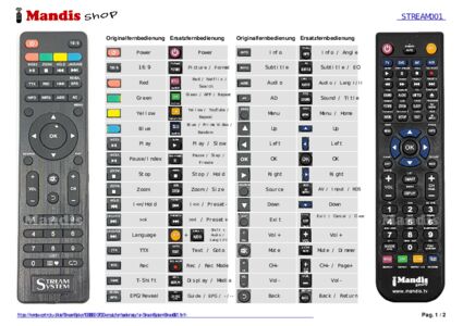 Diese Fernbedienung ersetzt Ihre Stream001 in vollem Umfang und bietet alle Funktionen des Originals.