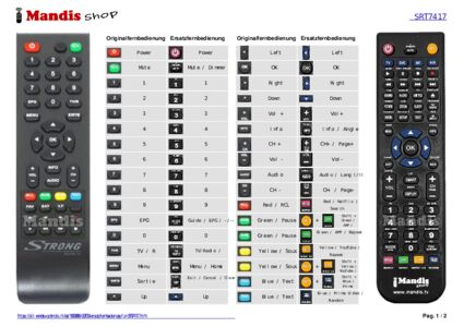 Diese Fernbedienung ersetzt Ihre SRT7417 in vollem Umfang und bietet alle Funktionen des Originals.
