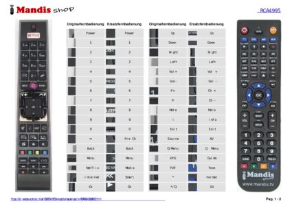 Diese Fernbedienung ersetzt Ihre RCA4995 (23389445) in vollem Umfang und bietet alle Funktionen des Originals.
