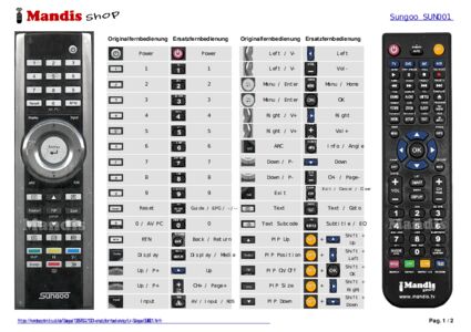 Ein Dokument ist enthalten, um die Verwendung der neuen Fernbedienung zu erleichtern, indem es die Tastenbelegung zeigt.