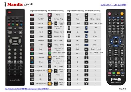Ein Dokument ist enthalten, um die Verwendung der neuen Fernbedienung zu erleichtern, indem es die Tastenbelegung zeigt.