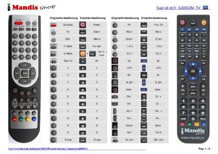 Ein Dokument ist enthalten, um die Verwendung der neuen Fernbedienung zu erleichtern, indem es die Tastenbelegung zeigt.