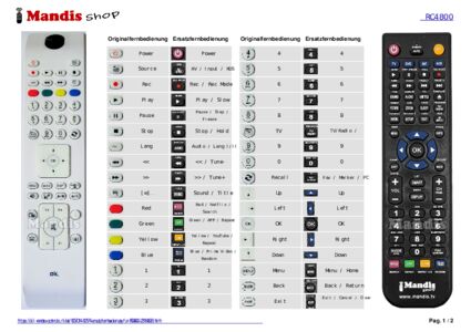 Die original Fernbedienung meines Panasonic Beamers war unreperabl defekt. Ein Ersatz war nirgends zu finden. Zum Glück entdeckte ich Mandis und bestellte die Ersatzfernbedienung nach der Originalnummer. Die nach kurzer Lieferzeit eingelangte Ersatzfernbedienung erfüllt alle, für den Betrieb wesentlichen Funktionen und es gibt dafür eine perfekte Anleitung.Das umständliche Einstellen von Schärfe, Zoom, Menue usw. direkt am Beamer geht jetzt wieder per Fernbedienung. Danke Mandis!!