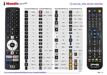 Fernbedienung für TD Systems 7601-ZS1220-0020TDS1
