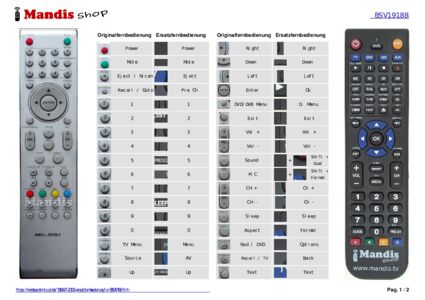 Ein Dokument ist enthalten, um die Verwendung der neuen Fernbedienung zu erleichtern, indem es die Tastenbelegung zeigt.