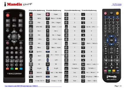 Home > Marken > Fernbedienungen TEKCOMM > Fernbedienung für TEKCOMM TCT 2100
