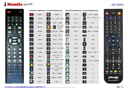 Ein Dokument ist enthalten, um die Verwendung der neuen Fernbedienung zu erleichtern, indem es die Tastenbelegung zeigt.