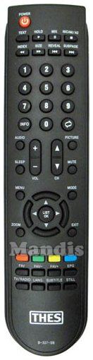 Fernbedienung Original B-327-SB zur Steuerung der TV-Geräte der Marke THES. Es handelt sich um eine Originalfernbedienung.