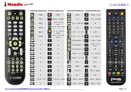 Ein Dokument ist enthalten, um die Verwendung der neuen Fernbedienung zu erleichtern, indem es die Tastenbelegung zeigt.