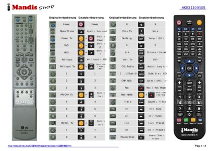 Ein Dokument ist enthalten, um die Verwendung der neuen Fernbedienung zu erleichtern, indem es die Tastenbelegung zeigt.