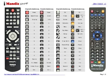 Diese Fernbedienung ersetzt Ihre DRH-5500X v1 in vollem Umfang und bietet alle Funktionen des Originals.
