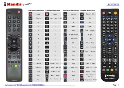 Ein Dokument ist enthalten, um die Verwendung der neuen Fernbedienung zu erleichtern, indem es die Tastenbelegung zeigt.