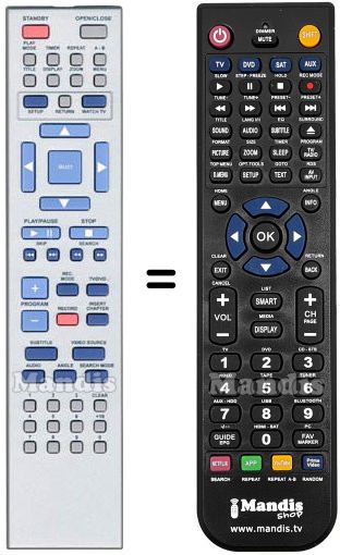 Im Folgenden zeigen wir Ihnen die Zuordnung jedes einzelnen Knopfes der Originalfernbedienung zu der Taste, die dieselbe Funktion auf der Ersatzfernbedienung ausführt. In einigen Fällen müssen Sie möglicherweise die UMSCHALT-Taste drücken, bevor Sie eine andere Taste drücken, um bestimmte Aktionen auszuführen. Diese zusätzlichen Funktionen werden oft wenig genutzt und dienen dazu, das Verständnis der Ersatzfernbedienung zu erleichtern oder weil die Originalfernbedienung mehr Tasten hat als das entsprechende Modell.