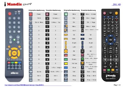 Diese Fernbedienung ersetzt Ihre ZAS HD in vollem Umfang und bietet alle Funktionen des Originals.