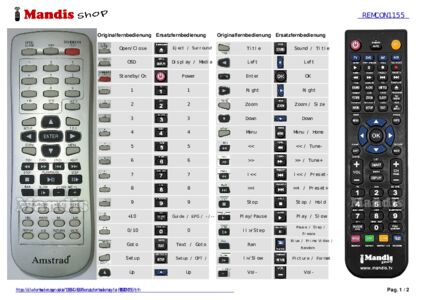 Diese Fernbedienung ersetzt Ihre REMCON1155 in vollem Umfang und bietet alle Funktionen des Originals.