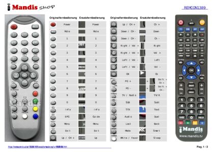 Ein Dokument ist enthalten, um die Verwendung der neuen Fernbedienung zu erleichtern, indem es die Tastenbelegung zeigt.