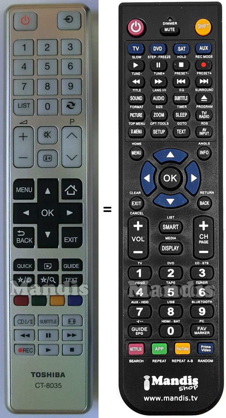 Diese Fernbedienung ersetzt Ihre CT-8035 (75037328) in vollem Umfang und bietet alle Funktionen des Originals.