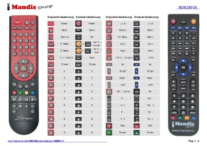 Ein Dokument ist enthalten, um die Verwendung der neuen Fernbedienung zu erleichtern, indem es die Tastenbelegung zeigt.