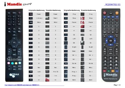 Ein Dokument ist enthalten, um die Verwendung der neuen Fernbedienung zu erleichtern, indem es die Tastenbelegung zeigt.