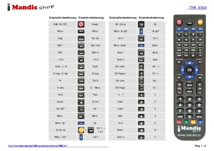 Diese Fernbedienung ersetzt die meisten Funktionen Ihres THR9500. Es ist keine Universalfernbedienung, sondern eine Kopie mit den meisten Tasten und Funktionen Ihres Originals.