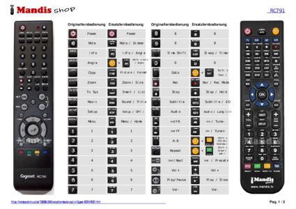 Diese Fernbedienung ersetzt Ihre Gigaset-RC791 (RC791) in vollem Umfang und bietet alle Funktionen des Originals.