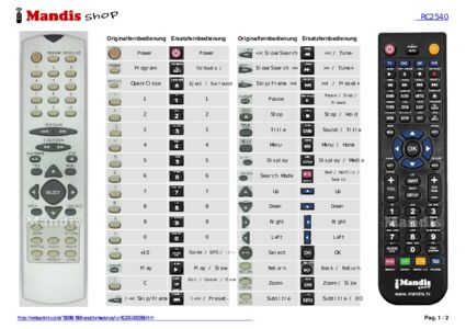 Ein Dokument ist enthalten, um die Verwendung der neuen Fernbedienung zu erleichtern, indem es die Tastenbelegung zeigt.