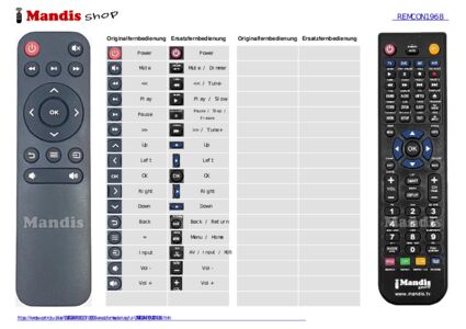 Die original Fernbedienung meines Panasonic Beamers war unreperabl defekt. Ein Ersatz war nirgends zu finden. Zum Glück entdeckte ich Mandis und bestellte die Ersatzfernbedienung nach der Originalnummer. Die nach kurzer Lieferzeit eingelangte Ersatzfernbedienung erfüllt alle, für den Betrieb wesentlichen Funktionen und es gibt dafür eine perfekte Anleitung.Das umständliche Einstellen von Schärfe, Zoom, Menue usw. direkt am Beamer geht jetzt wieder per Fernbedienung. Danke Mandis!!