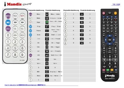 Die original Fernbedienung meines Panasonic Beamers war unreperabl defekt. Ein Ersatz war nirgends zu finden. Zum Glück entdeckte ich Mandis und bestellte die Ersatzfernbedienung nach der Originalnummer. Die nach kurzer Lieferzeit eingelangte Ersatzfernbedienung erfüllt alle, für den Betrieb wesentlichen Funktionen und es gibt dafür eine perfekte Anleitung.Das umständliche Einstellen von Schärfe, Zoom, Menue usw. direkt am Beamer geht jetzt wieder per Fernbedienung. Danke Mandis!!