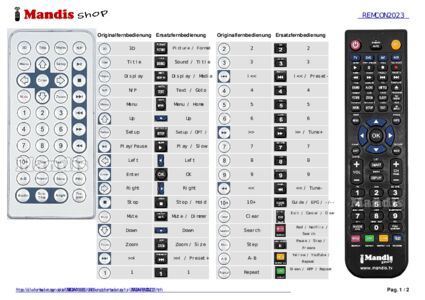 Ein Dokument ist enthalten, um die Verwendung der neuen Fernbedienung zu erleichtern, indem es die Tastenbelegung zeigt.