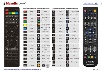 Ein Dokument ist enthalten, um die Verwendung der neuen Fernbedienung zu erleichtern, indem es die Tastenbelegung zeigt.
