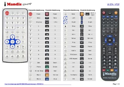 Ein Dokument ist enthalten, um die Verwendung der neuen Fernbedienung zu erleichtern, indem es die Tastenbelegung zeigt.