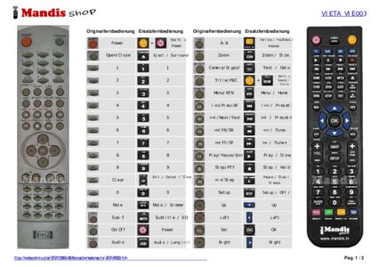 Diese Fernbedienung ersetzt Ihre VIE003 in vollem Umfang und bietet alle Funktionen des Originals.
