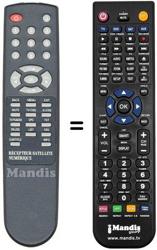 Fernbedienung, die das Original und die Gesamtheit seiner Funktionen, vollständig ersetzt.