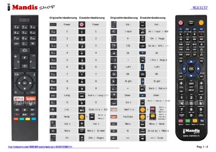 Ein Dokument ist enthalten, um die Verwendung der neuen Fernbedienung zu erleichtern, indem es die Tastenbelegung zeigt.