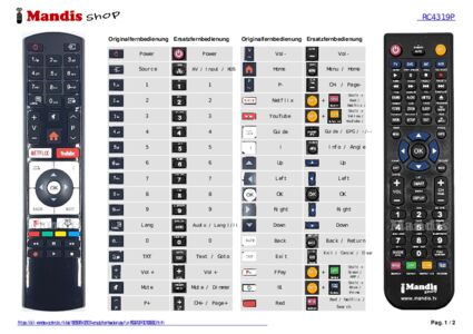 Diese Fernbedienung ersetzt Ihre RC4319P (30100830) in vollem Umfang und bietet alle Funktionen des Originals.