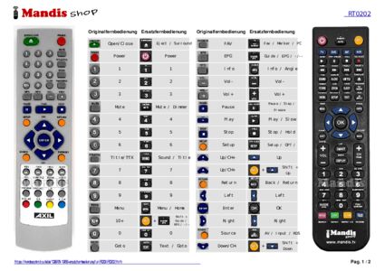 Ein Dokument ist enthalten, um die Verwendung der neuen Fernbedienung zu erleichtern, indem es die Tastenbelegung zeigt.