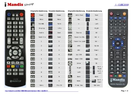 Ein Dokument ist enthalten, um die Verwendung der neuen Fernbedienung zu erleichtern, indem es die Tastenbelegung zeigt.